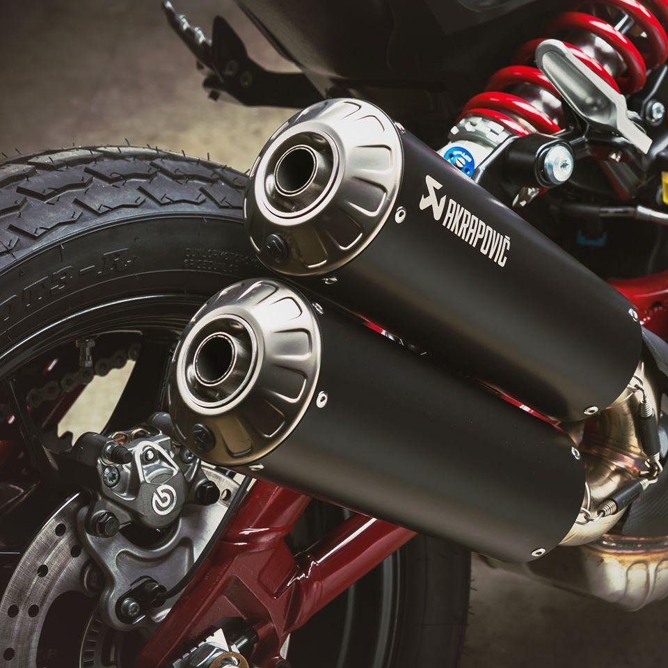 - Low mounted stainless steel Akra exhaust with Titanium mufflers. That has helped to bring the typical VTwin sound.