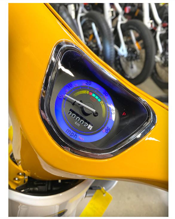 The Monterey Electric Scooter features 2.4kw brushless motor that calibrates to  120N.m / 88ft/lb torque and goes up to the 32Mph / 52km/h.