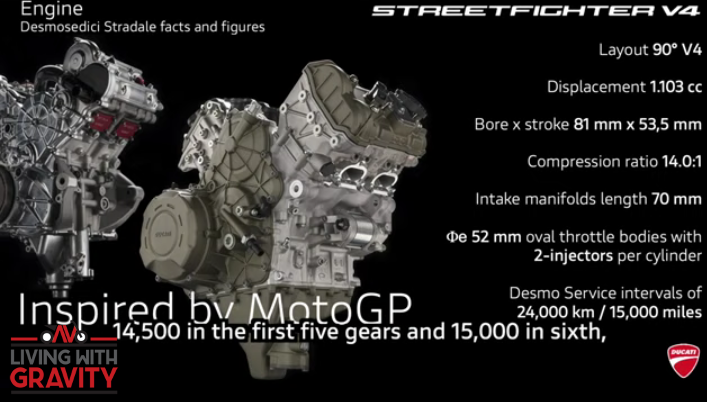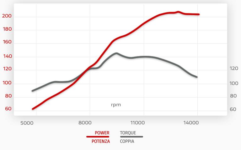 • The V4 now comes with 208 hp (153 kW) of power @ 13,000 rpm, 250 rpm more than the outgoing Euro 4 V4.