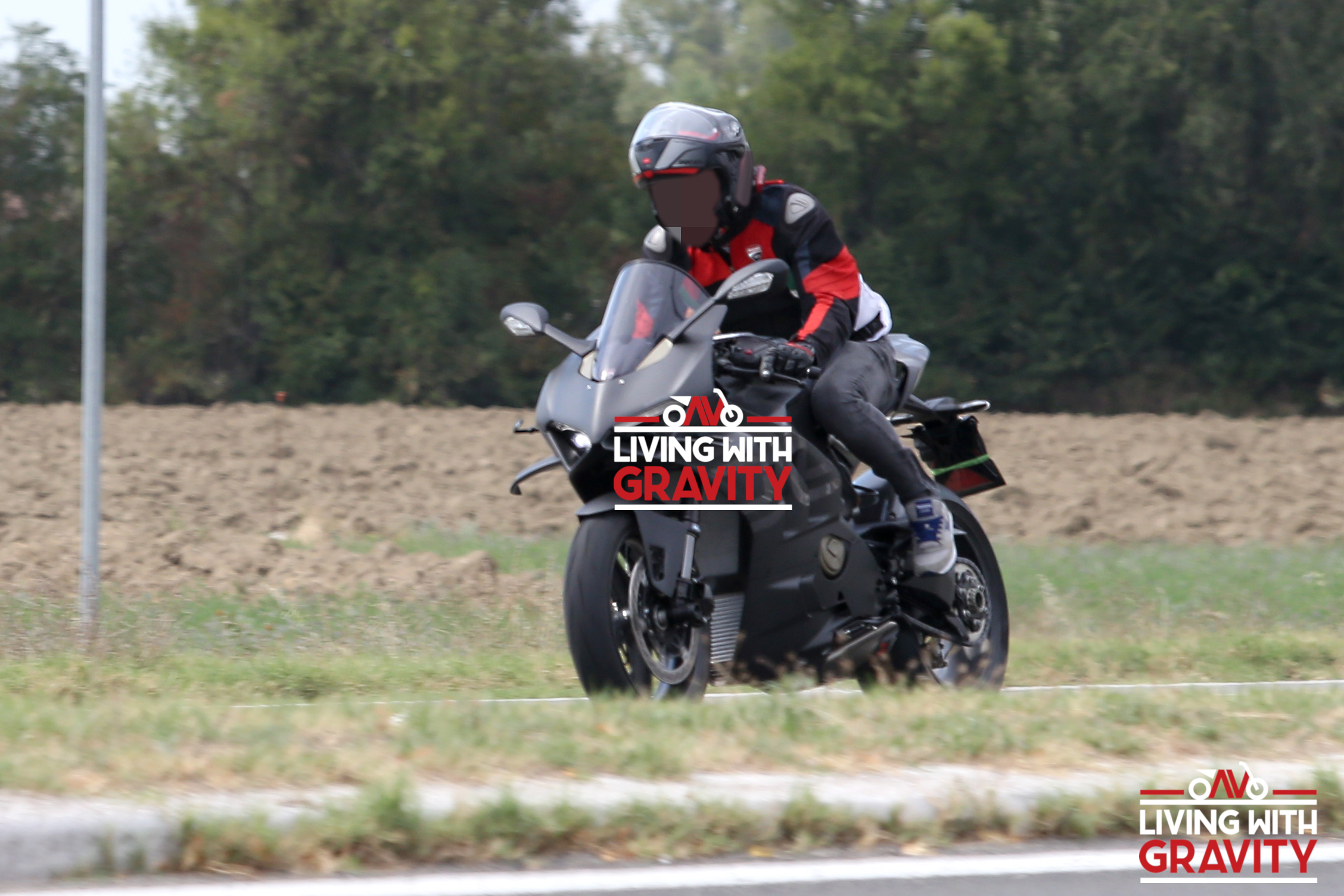 Our spies in Italy photographed a never-before-seen variant of the Panigale V4. The bike is strikingly black, although the fork is usually gold. Even the brakes are black.Â