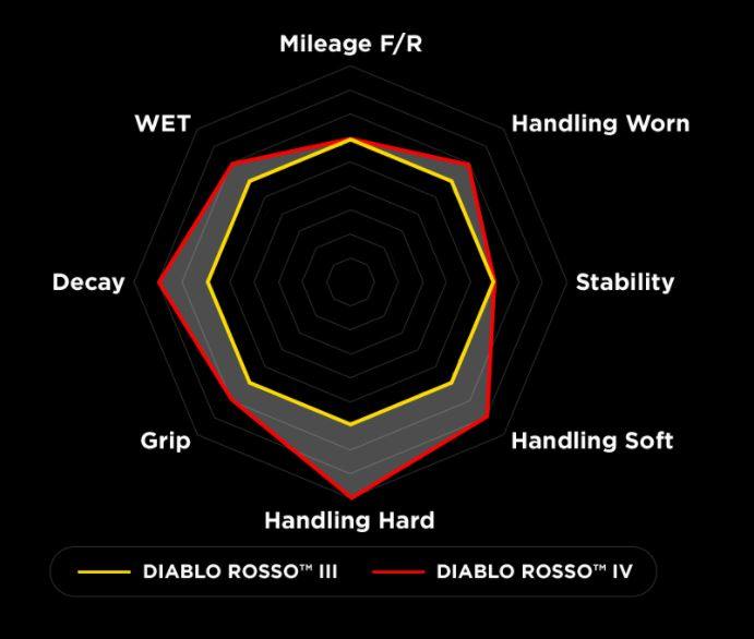 DIABLO ROSSO â„¢ IV is a benchmark in the sports tire segment for all these vehicle classes.Â