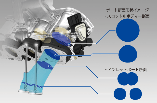 The size of the inlet ports is raised from 40mm to 44mm now this is responsible for the improvement in the intake efficiency.