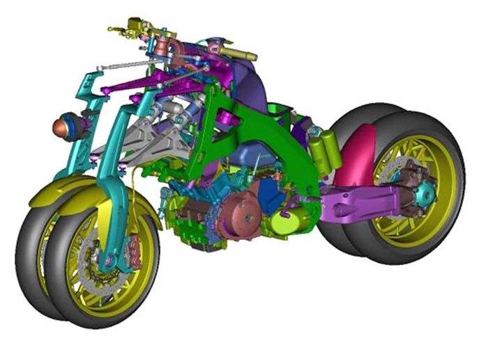 The concept had a unique suspension mechanism that allowed the machine to lean while cornering.