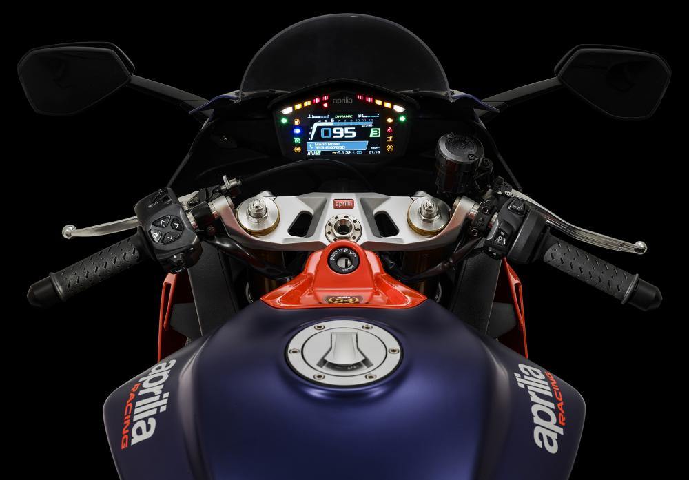 • Aprilia certified Akrapovič complete exhaust which enhances the bike’s performance.