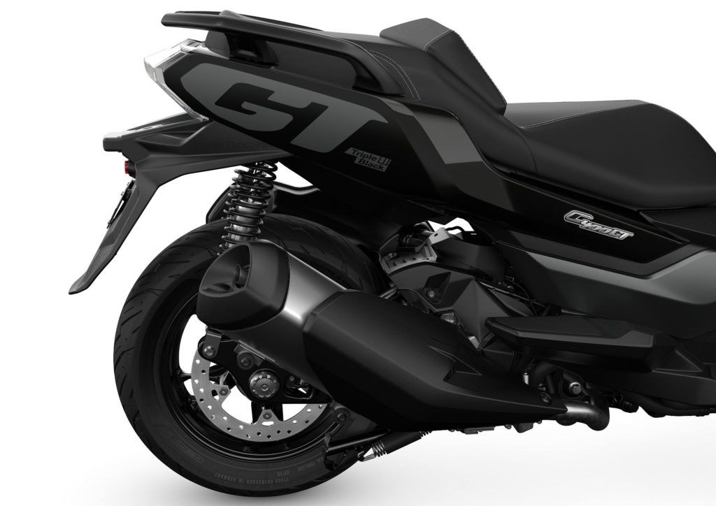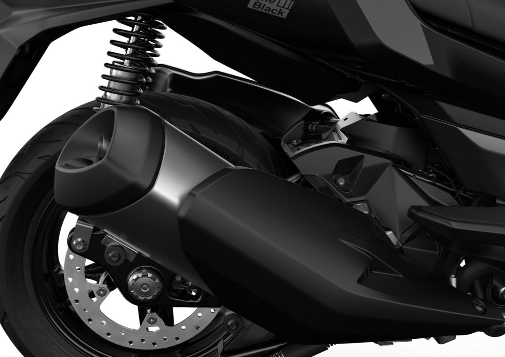 Power transmission is via a CVT (Continuously Variable Transmission) gearbox. And a torsionally stiff drivetrain swing arm with an innovative swing arm bearing for minimum vibration and maximum comfort.