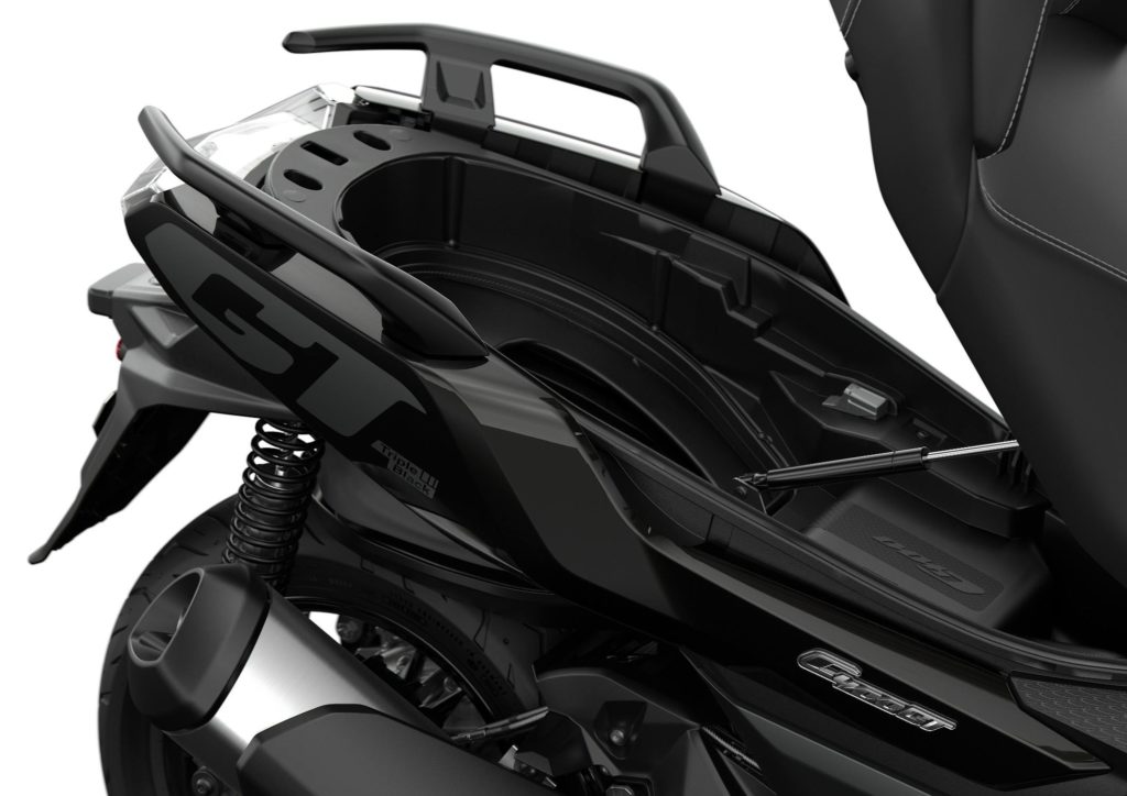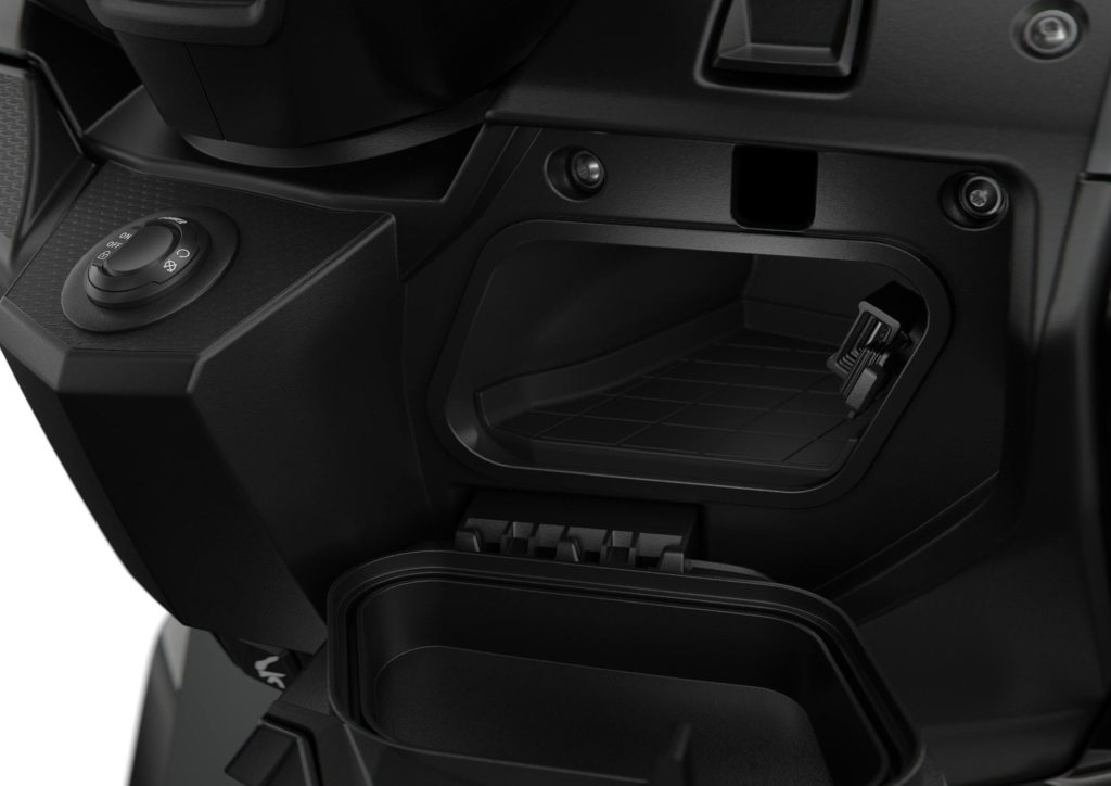 Brake system with new front brake callipers and adjusted lever travel of front and rear brakes. Storage compartment with optimised lighting and USB charging socket.