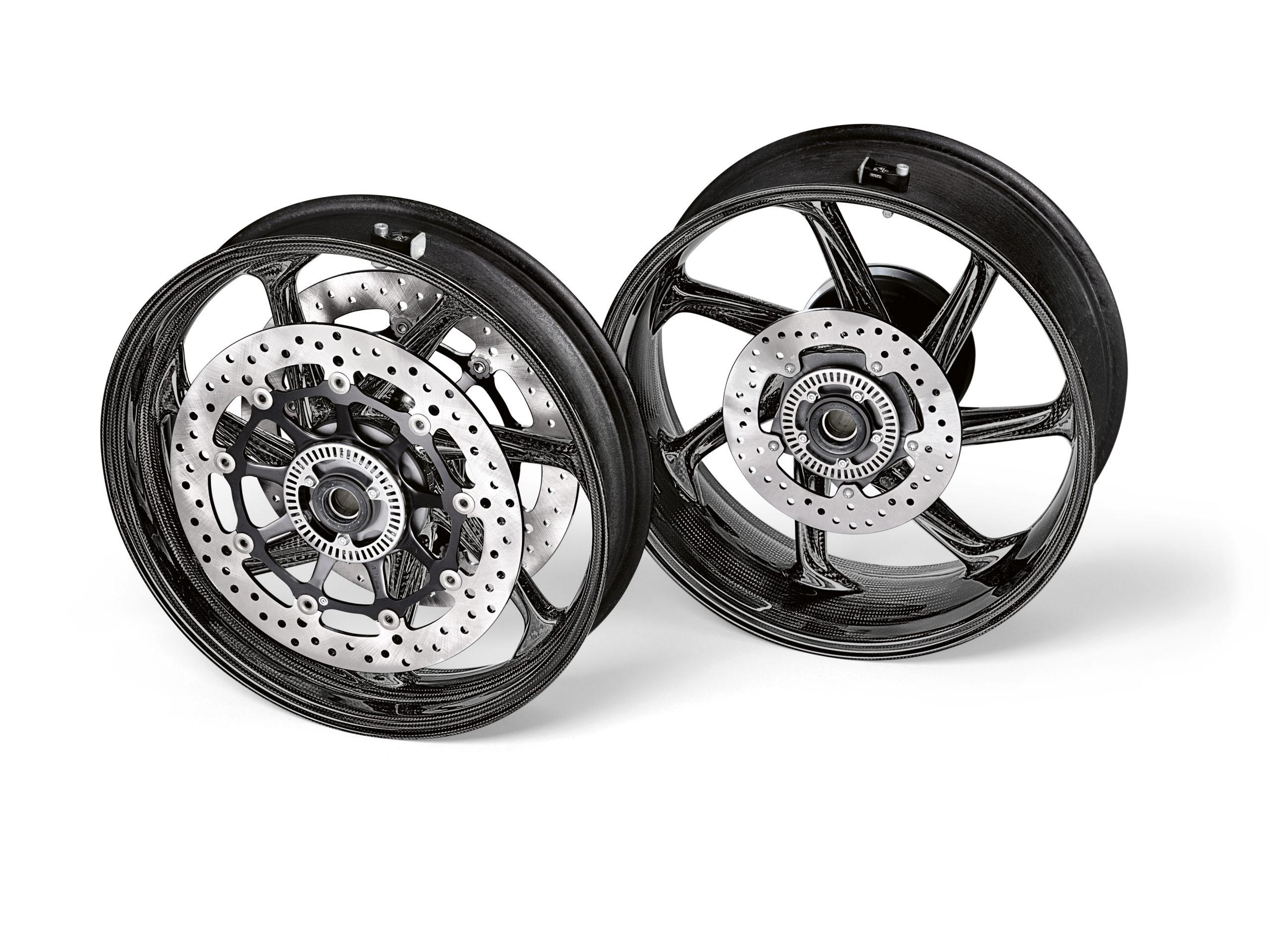 The M Performance carbon fibre wheels for the S 1000 RR are 1.7 kg lighter in total than the standard aluminium wheels, compared to already launched wheels which have reduced weight by 1.6 kg.
