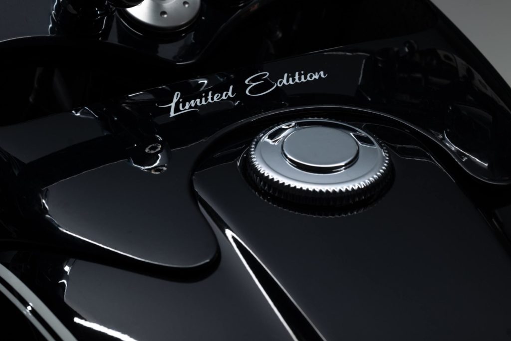 The original paintwork and lines come adopted for the fairing and wing, with some details in Kingston style. The wheel suspension and fuel tank are original. The design as a whole comes based on classic art deco style.