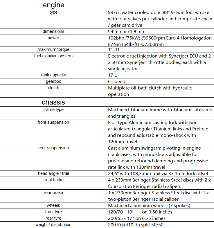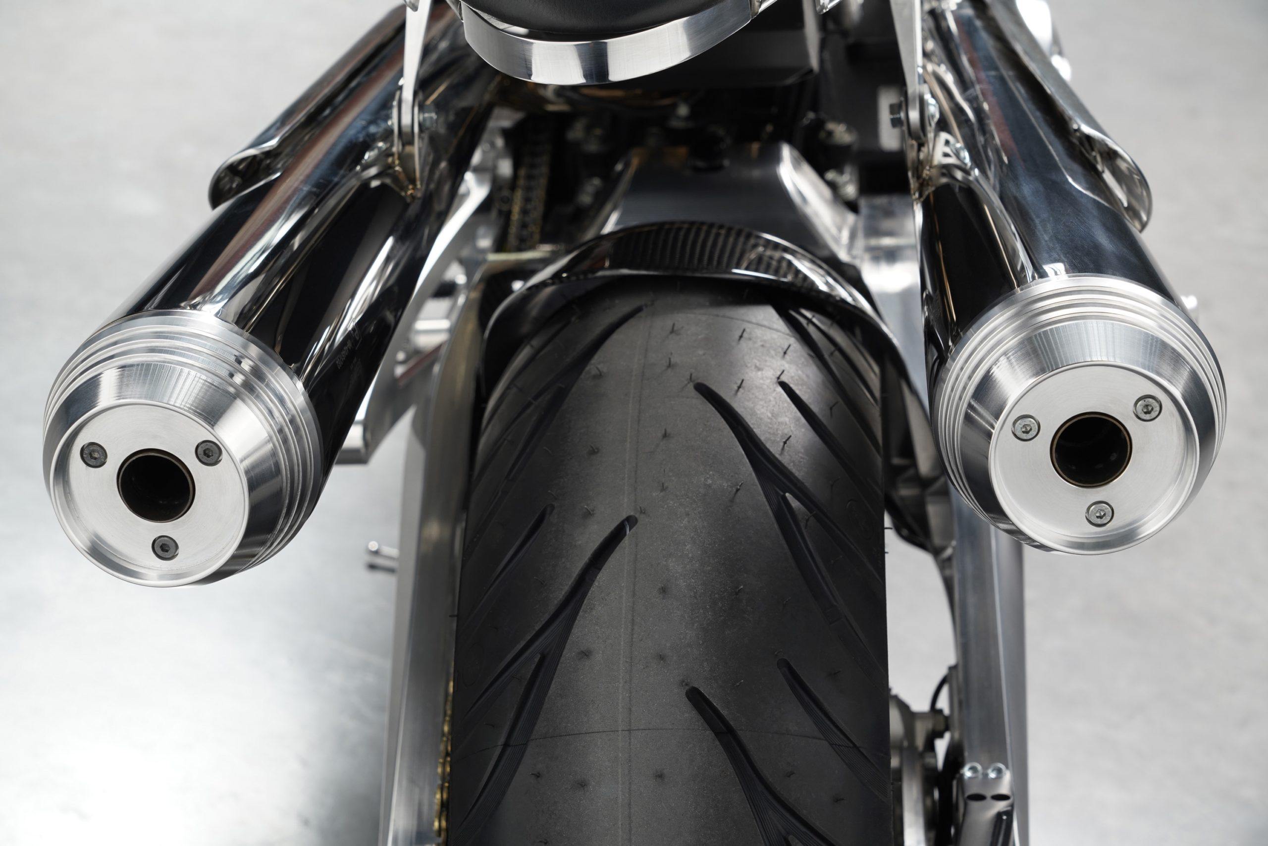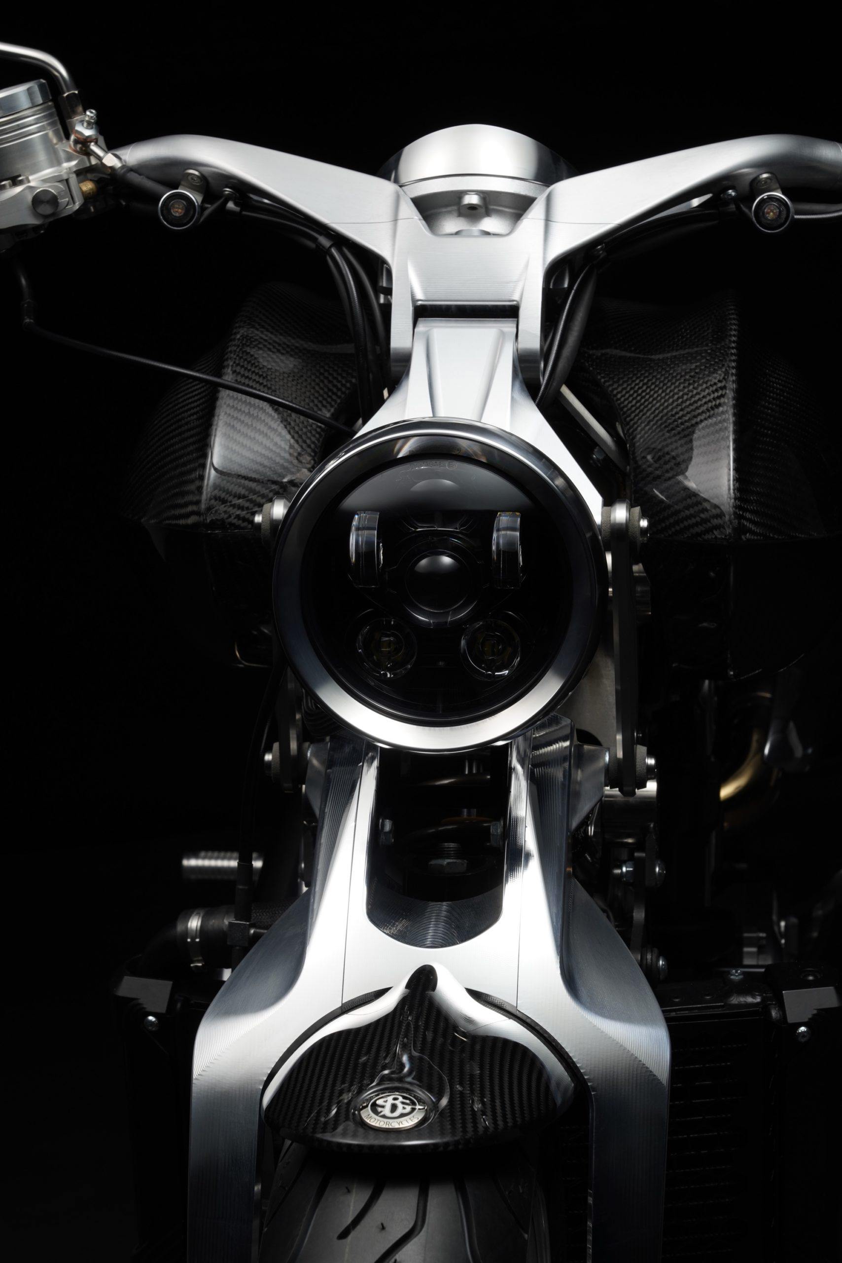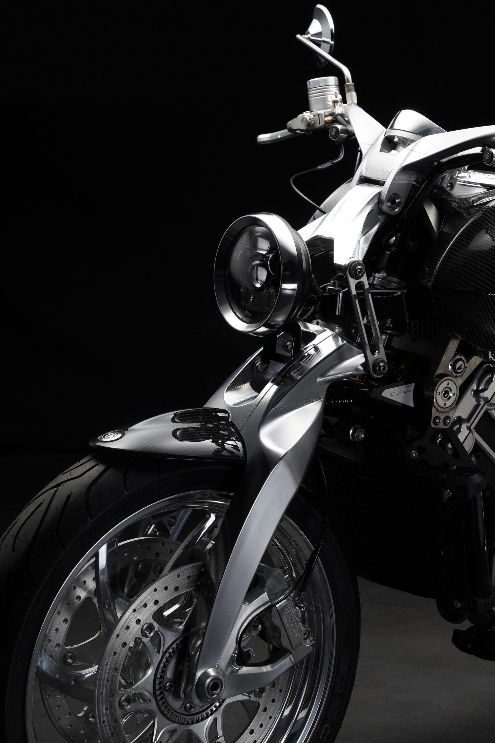 The frame of the motorcycle is titanium, and its fork is a Fior type in aluminium. The engine has entirely been developed internally by the Brough Superior engineers.