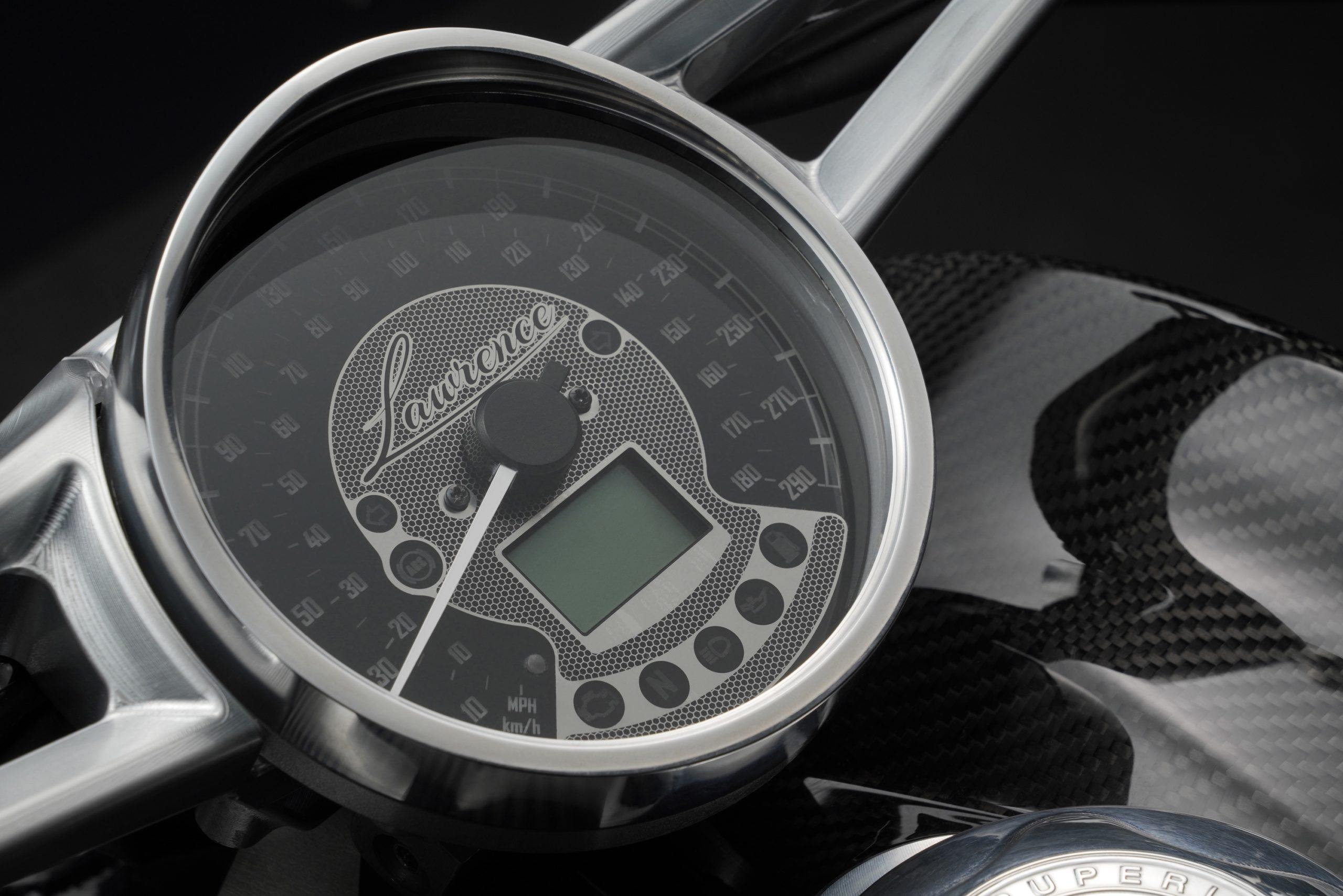 This new model represents a milestone for Brough Superior. Inspired by the mechanical architecture of the S.S.100. Lawrence has unique curves that were only possible to be created by using carbon fibre.