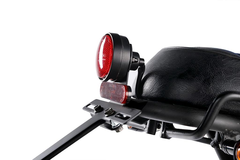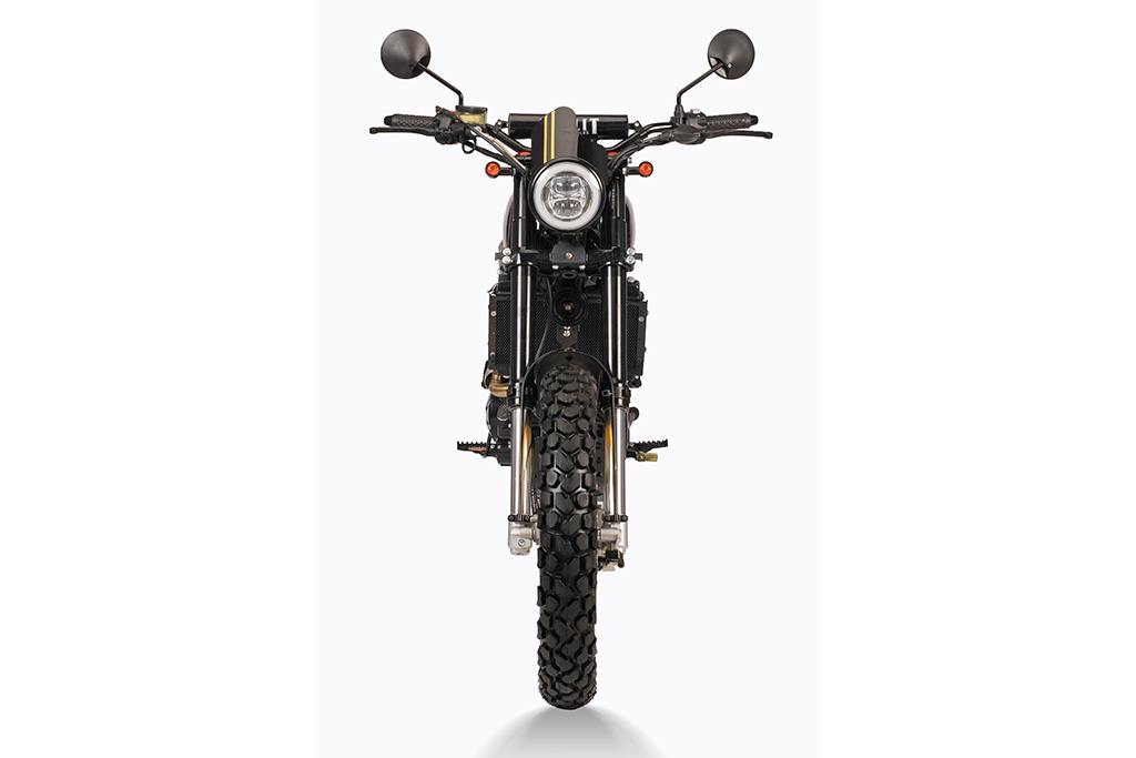 The round LED headlight and the small round rear light with the number plate complement the entire design. Moreover, there is only a front fender present.