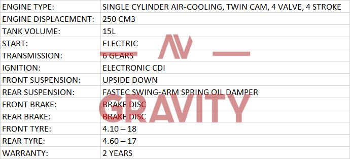 The entire 250cc setup is integrated with a 6-speed transmission.