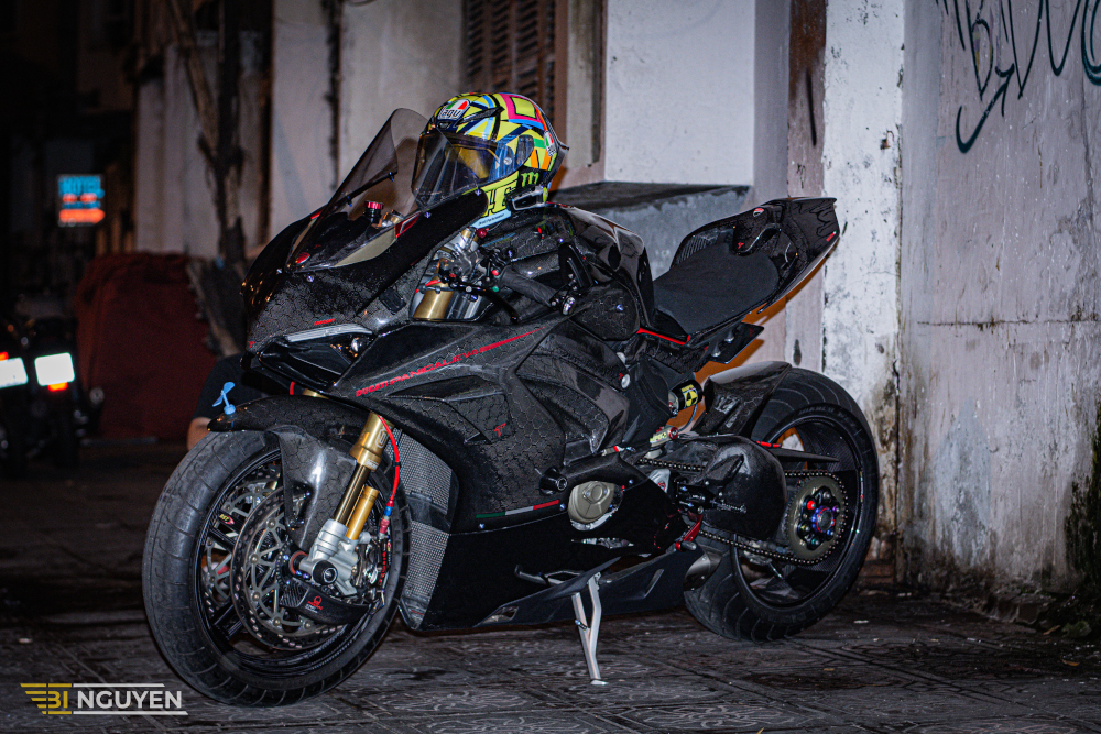 The folks at the Taboo Shop had turned the Ducati Panigale V4 into one the darkest custom we would say all clad in black carbon fiber.Â