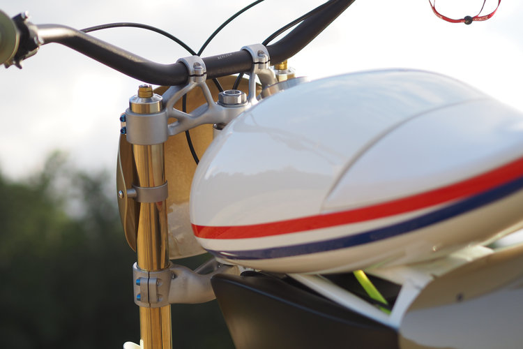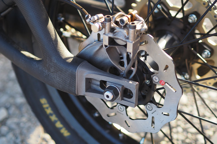 Oh well, and not to forget the world’s first Carbon Fiber and 3D printed Titanium Rear Swingarm. It also gets the 3D printed Alminum Front Fork Mounts.