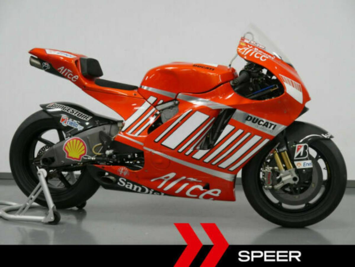 However, now the GP8 machine used by Casey Stoner is on sale. The Desmosedici started from GP3 series to GP11. The GP11 was the one used by Rossi and Hayden from 2011.