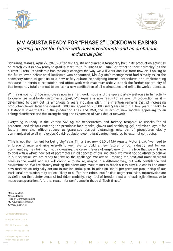“It is now almost 4 weeks since the factory doors closed due to the current pandemic, and we wanted to provide you with an update to the information posted at that time.