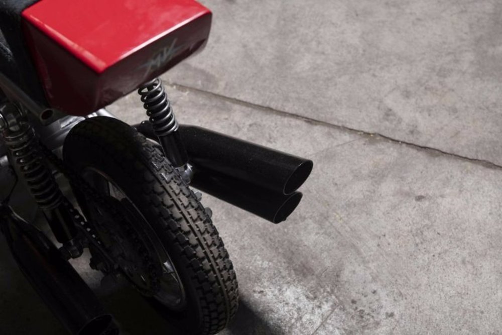 The scaled down bike was proposed as a smaller than usual copy of the official Read 500, and has some striking subtleties, beginning from the fairing, the seat in calfskin, the half-handlebars and even the four “Tromboncini” at the back.