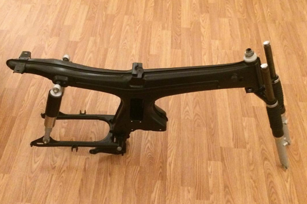 - Step 1:Â Aaron started to dismantle the entire bike and removed the dust until only the leftover frame and then he sprayed all the pieces of the bike with black paint.