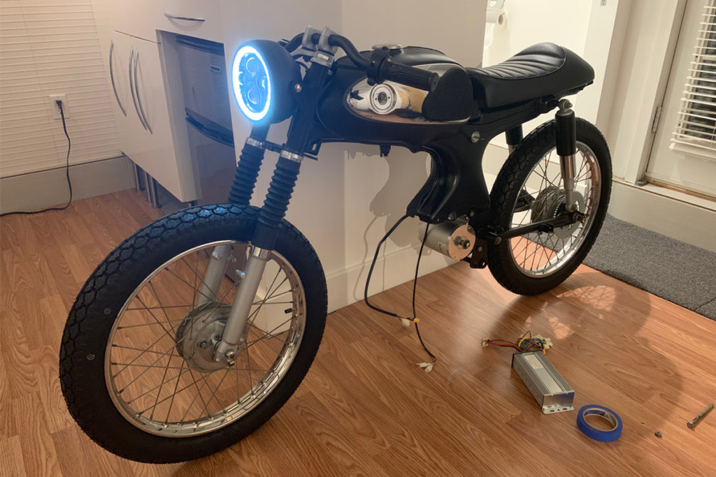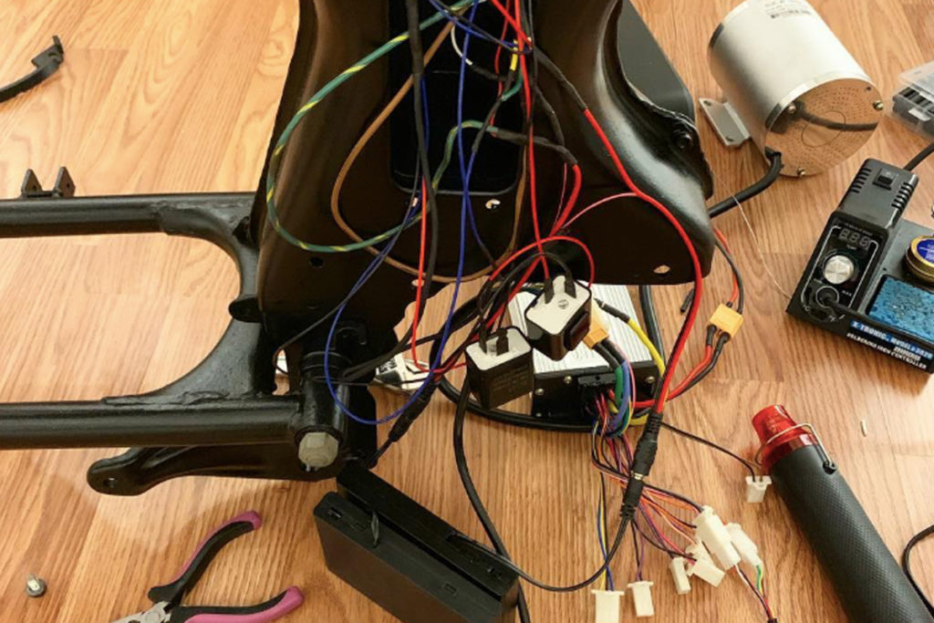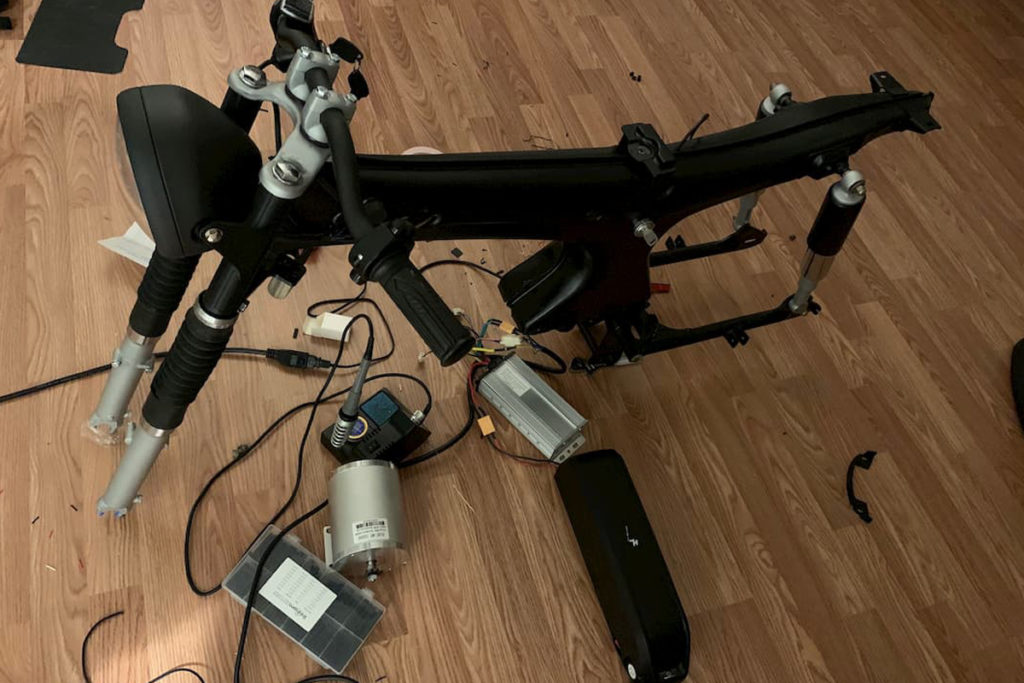 - Step 4:Â The next step was to order parts like a controller, battery, motor, etc and while he was building he did not take any help from the metal tools and maximum parts were substituted. He later made the substitution of the combustion engine with a 48v 2000w brushless direct current motor powered by a 17AH lithium-ion battery.