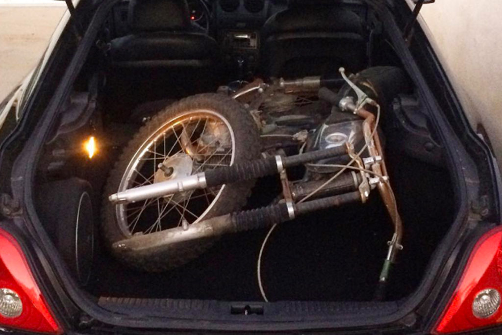 Thinking in his mind Aaron wanted to give a better shape to this motorcycle he requested the seller “Will it be able to fit at the back of his sports car”.Then the deal was on. Well, the seller took a wrench dismantled the front wheel.
