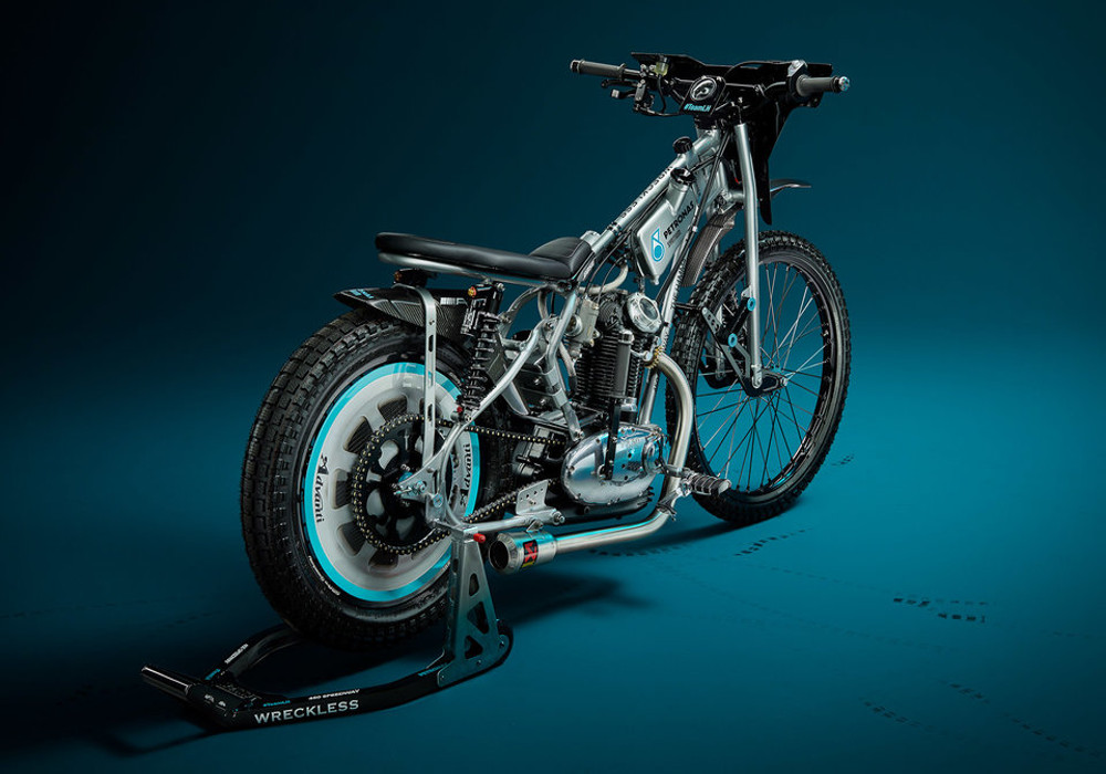 The current build is exact opposite of what Rick has been building and its called as Ducati Speedway H4MM4 Motorcycle. The speedway motorcycle sport involves thin frame motorcycles that are light weight with lower displacement engines. Race involves riders to slide the motorcycles on sideways.