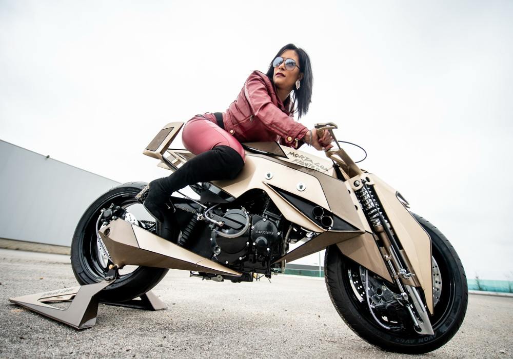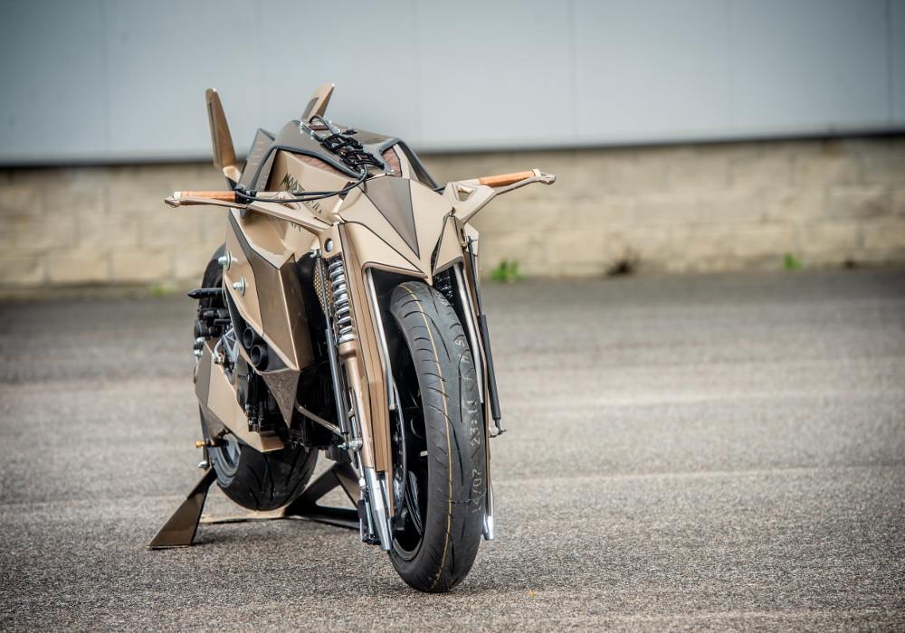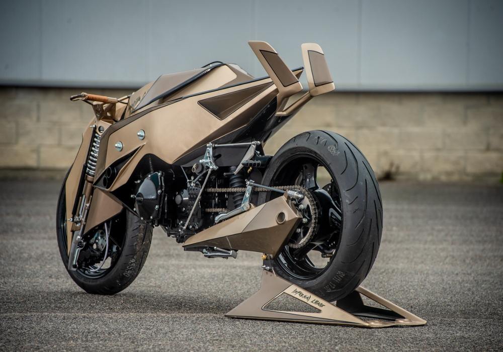 The last version had two colours, gold and white, and thick golden lines across the white paint area give a light tint to the entire motorcycle.