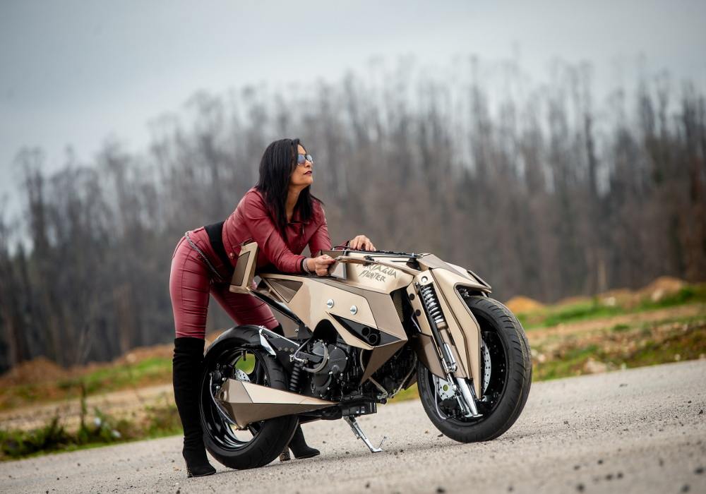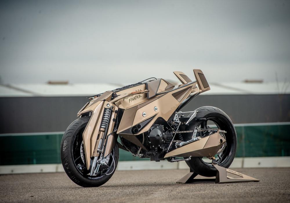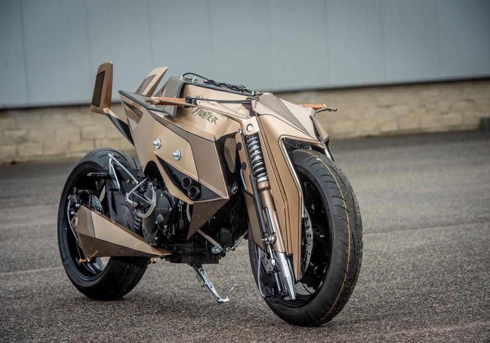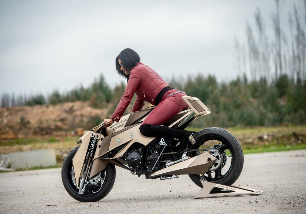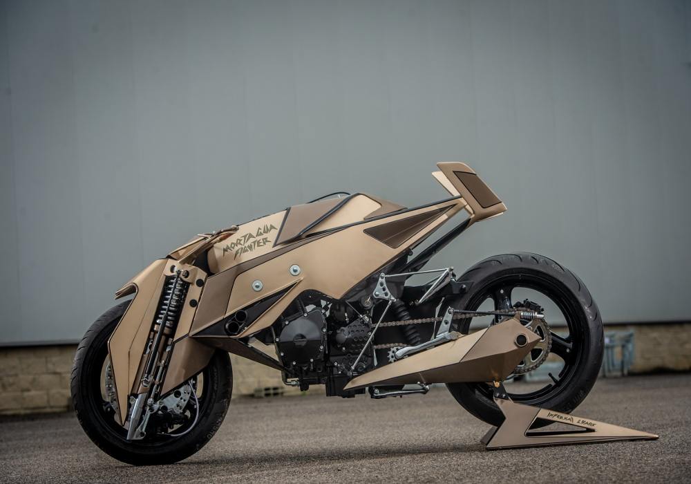The net membrane near to forks on both sides looks cool. The grip seems wooden. The rear comes inspired by the fighter plane’s tail and does give good support to the rider.