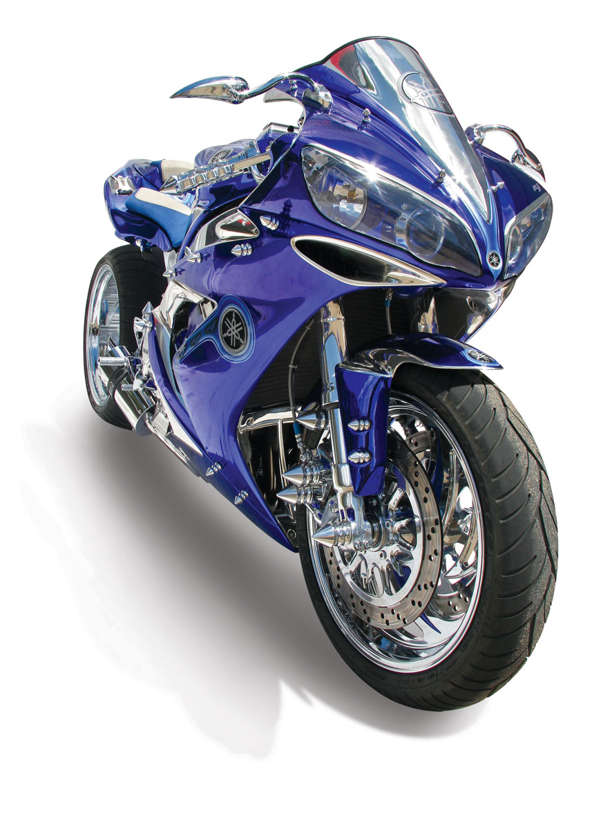 - Pro 1 chrome plated mirrors, RIS Design switches, Sutton’s Speedy Services CNC-machined triple clips and stores.Spike brake cooling framework, R1 ace barrels.