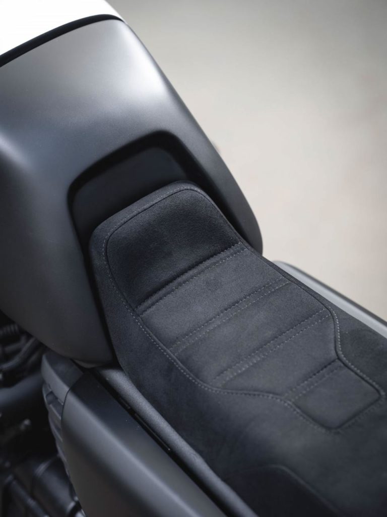 Exhaust too is modified R100R pre silencer (black ceramic coated) with hand-sharpened aluminium end cap.