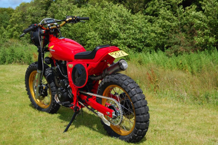 The paint scheme is all red making it look wonderful.What you get is a slim, compact scrambler that grabs the attention plus very effective for riding.