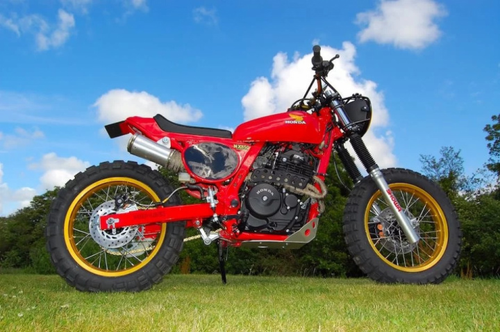 The bike is the lightweight and the base model used is 1993 Honda NX650 that comes with a new tank that is been put from 80s Honda CG125, it gets all-new rims, new tires, new lights, a cropped subframe and off course a new seat.