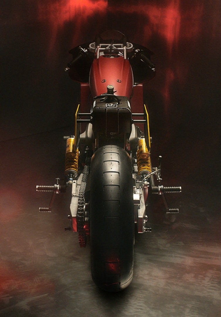 The name “Appaloosa” is derived from a famous American horse breed. Inspiration also comes from fighter jets with open nosed front fairing . Heart of the bike Engine is modified to perform from 100 to 130 hp after nitrous oxide system been added.