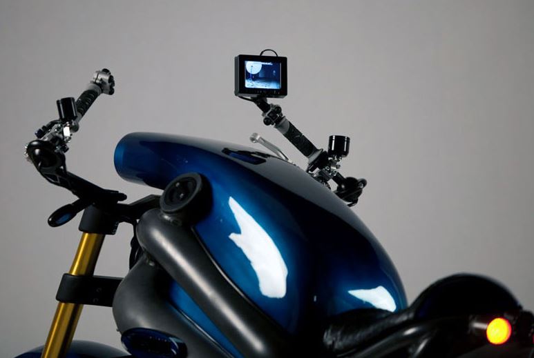 - MotoCam rearview camera system with integrated digital speedometer and tachometer