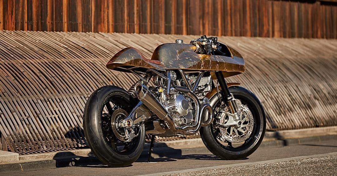 Krax Moto is team of five and come up with this build of cafe racer with all in Golden paint scheme.