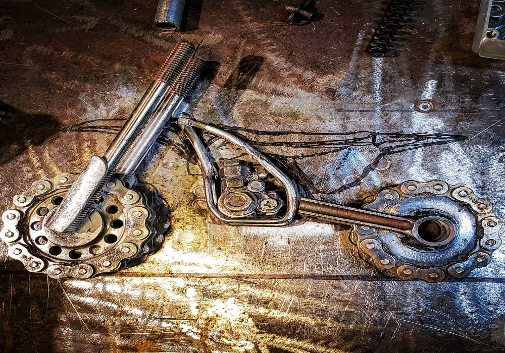 PJ : Standing in my garage at my bench making money welding. It’s still a hobby for me at this point but I am starting to see that with a few lucky breaks and a whole lotta hard work I could actually do this for a living! My goal is to get my work into some local art galleries and other places it can be seen and enjoyed… As well as sold.