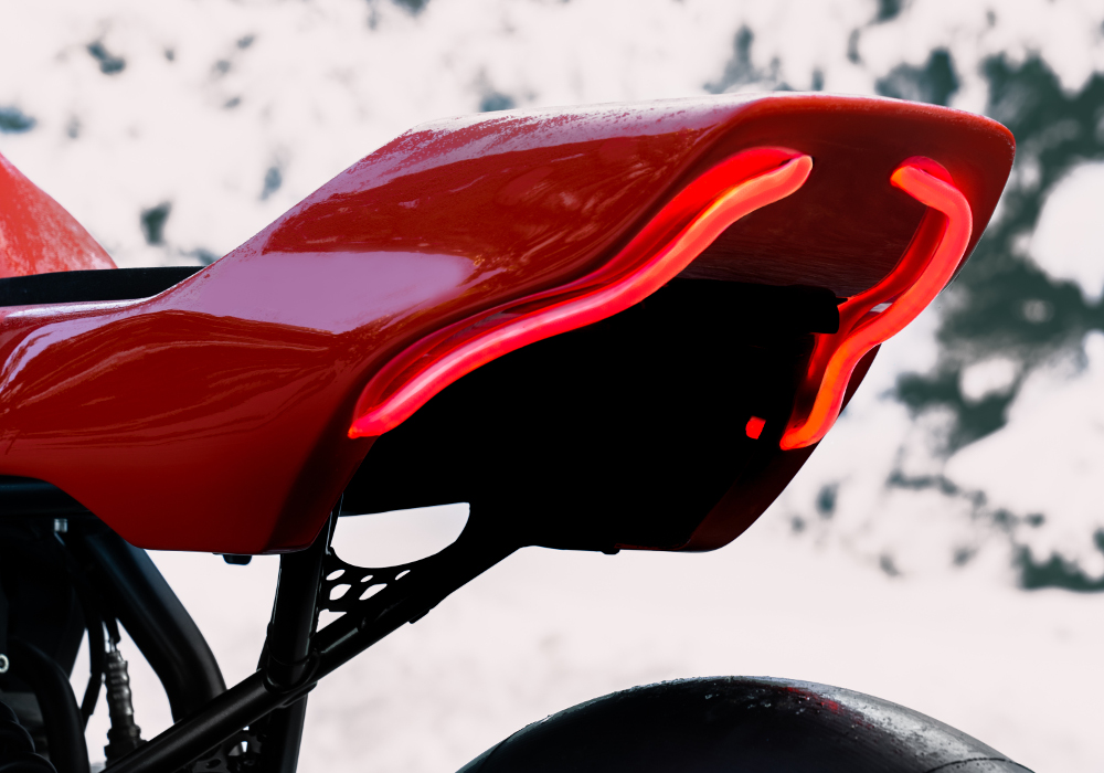 The tail lights was made by bending plexiglas tube in the shape they like and put inside with a silicone lighting tube with leds, they wanted to have a neon result and a unique tail light which was curve in shape.