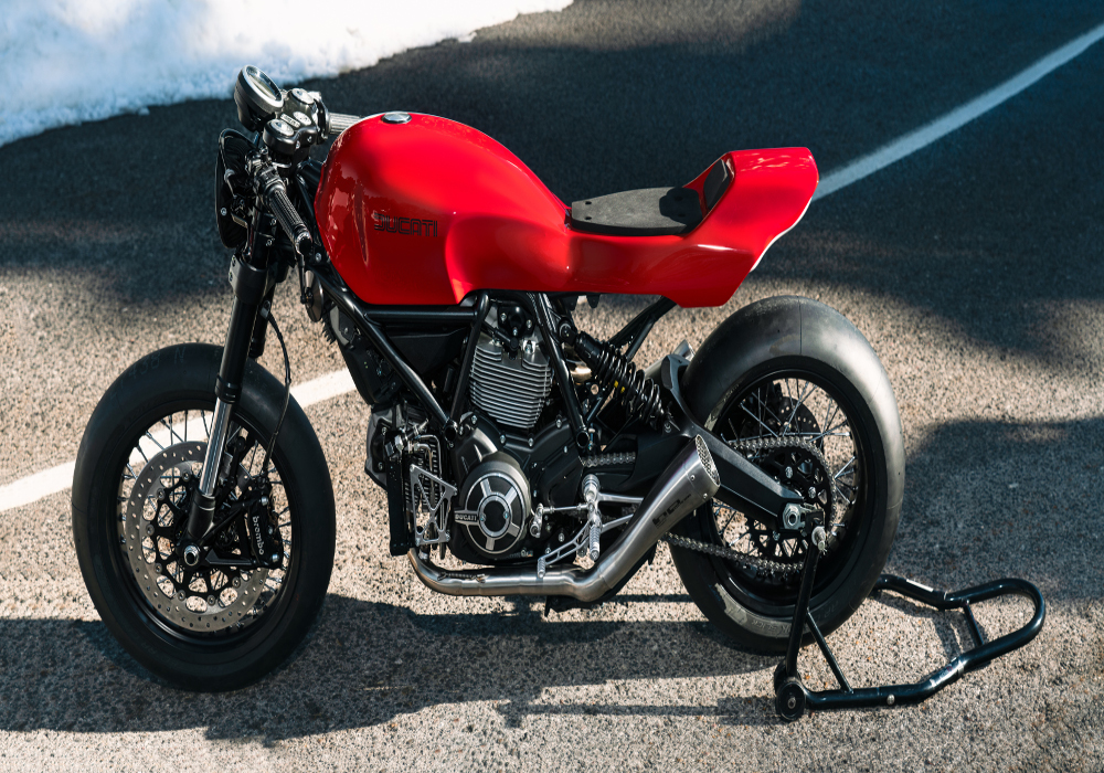 “Put on some red lipstick and live a little” is a message which Jig Saw Customs gives in their latest Ducati Scrambler 800 build. Red and Black color paint scheme is the first thing that is eye catchy when you look at it.Build is clean, simple and yet very effective.To draw the line lets go back in history of Jig Saw Customs where the dot begins.