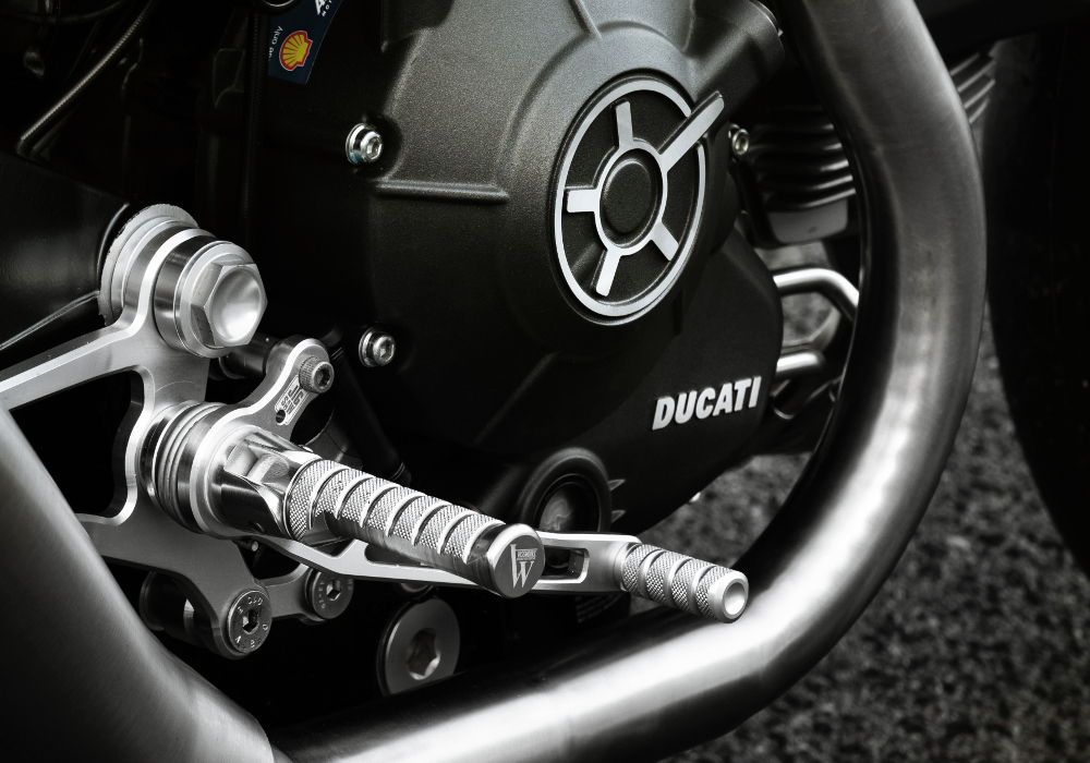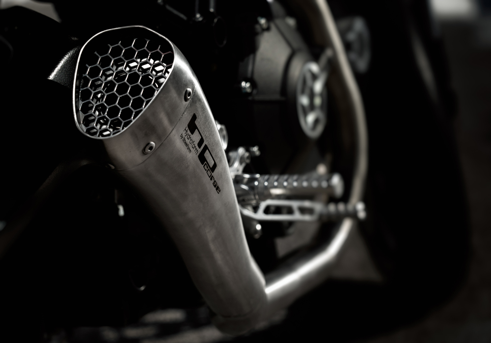 About electrical upgrades, Motogadget told them that this can be bus system .So the ECU, ABS, handlebar switches were kept as is, and they tried to hide the main key switch , putting it in the frame. Unique exhausts were build with HP Corse Slip ons.