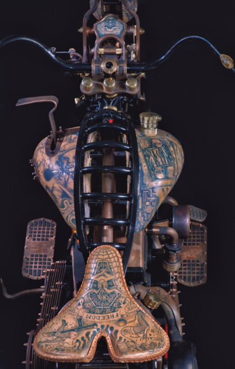 “The Recidivist” it is fondly called had won many international awards and trophies for Game Over Cycles. The entire bike is wrapped up in the skin of tattoos. So any component that you see whether it is seat, tank, fender or lamp is covered with the tattoos. The bike costs 1,000,000 USD.