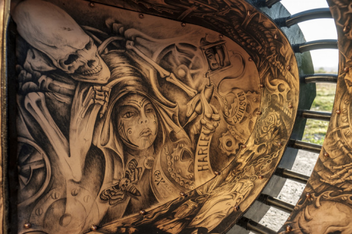 The base model used is the Harley-Davidson Heritage. The bike was launched in 2014, September at the “London International Tattoo Convention ” a large event. Later in 2017, the sidecar was made. The sidecar also gets the same treatment as that of the bike that is fully covered in tattoos.