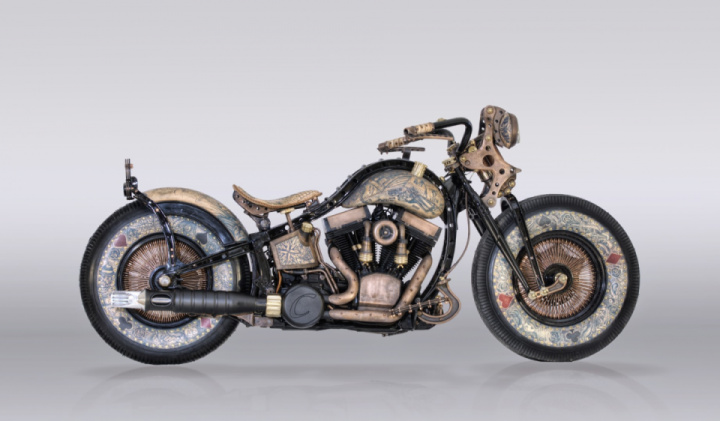 The base model used is the Harley-Davidson Heritage. The bike was launched in 2014, September at the “London International Tattoo Convention ” a large event. Later in 2017, the sidecar was made. The sidecar also gets the same treatment as that of the bike that is fully covered in tattoos.