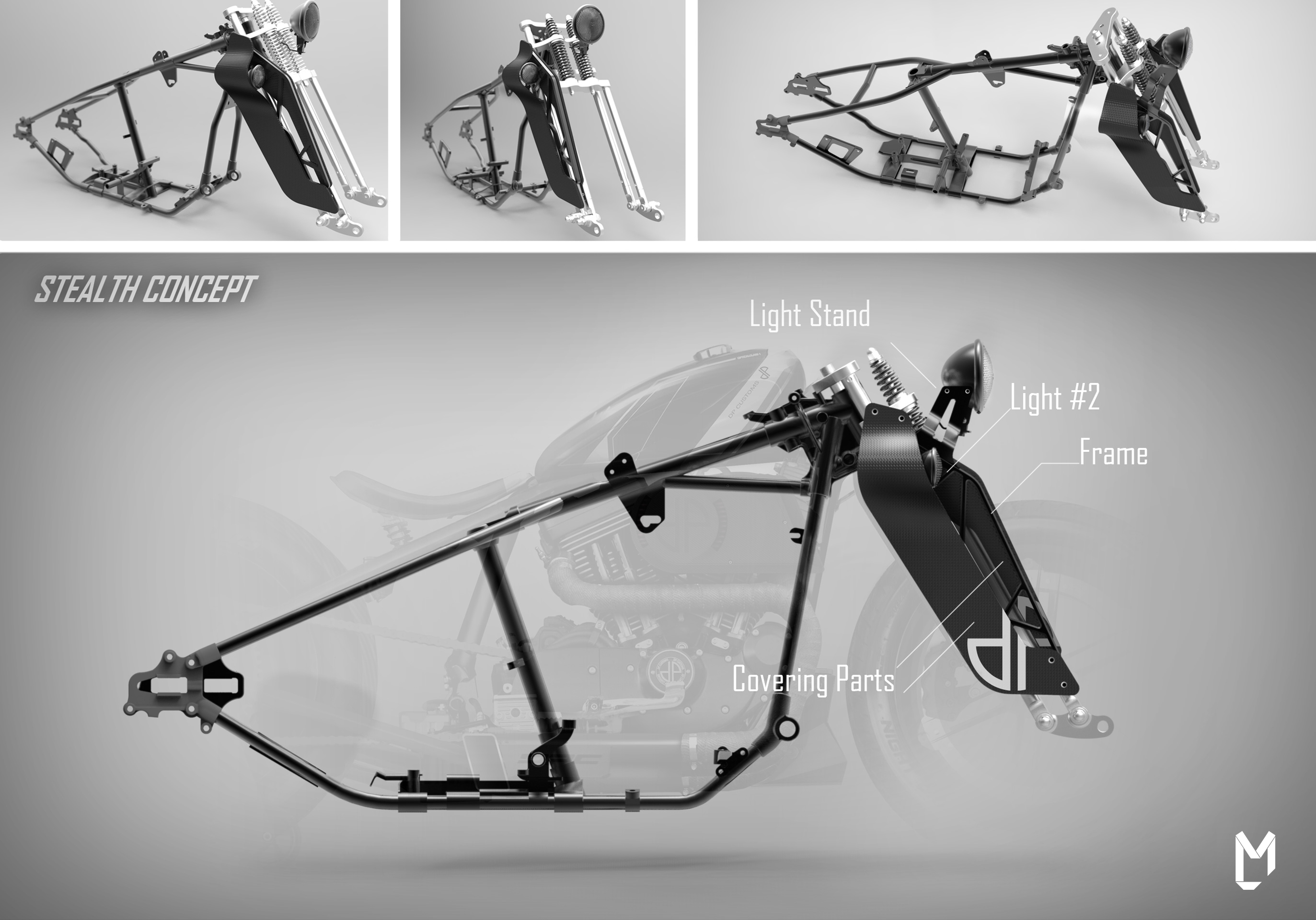 Vincent : Thanks.It began 2 years ago with a sketch! So it is not so new for my finally. I draw an Harley concept for a contest and few months later I decided to cover it!It was a challenge to make something still dynamic and attractive with a big bulb. I like the balance between a bulky front in contrast with the light rear.