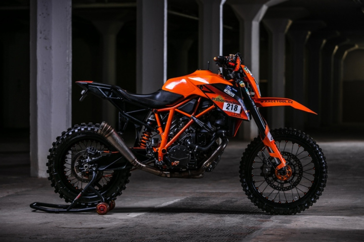 The objective was to stack furious power in the single-cylinder bike, with a fully tuned LC8 engine.The forks are taken from 1290 Super Adventure and the bike now styles the large sized rims from Kineo.