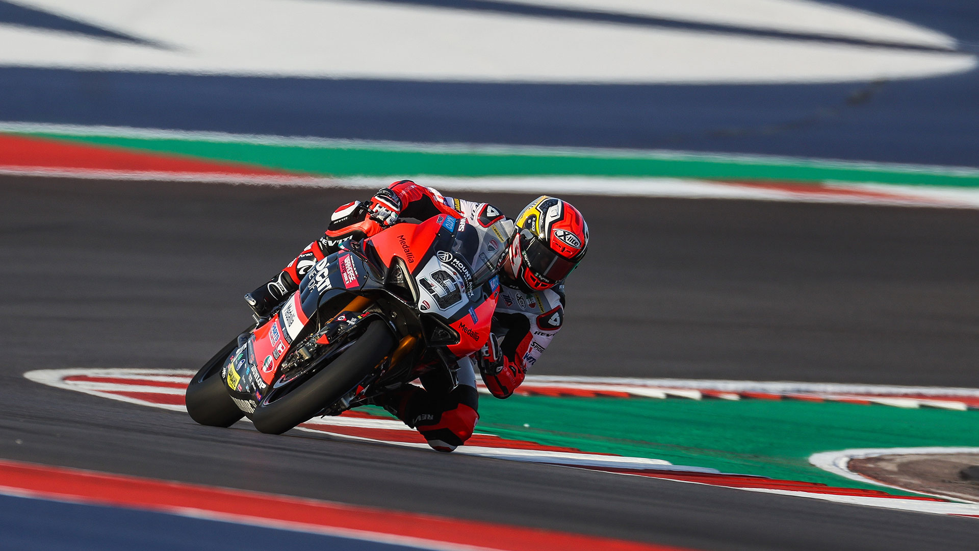 Former double MotoGP race winner Petrucci completed a mammoth 34 laps across three official timed sessions in Texas for round one of the 2022 MotoAmerica Superbike Championship. They steadily closed the gap to Yamaha’s Jake Gagne and Mathew Scholtz to finally end the day 0.338 seconds off the leader.