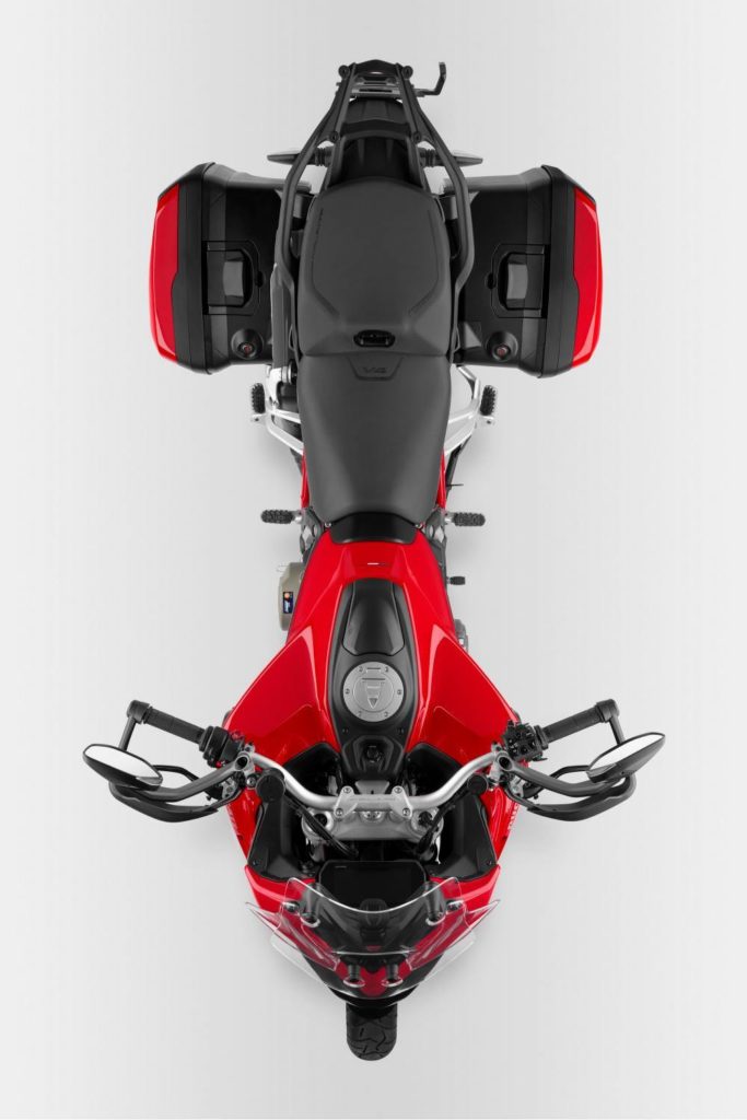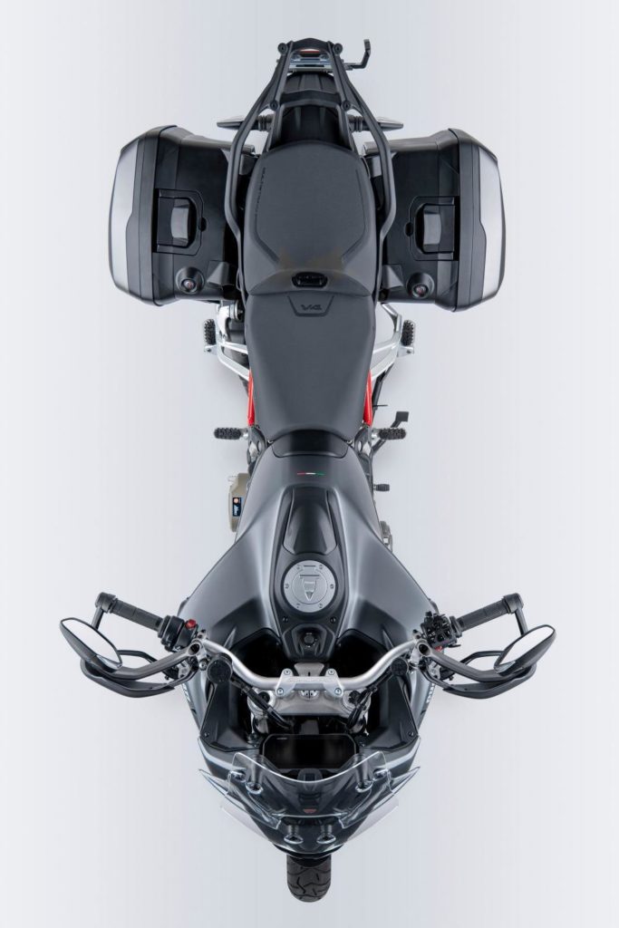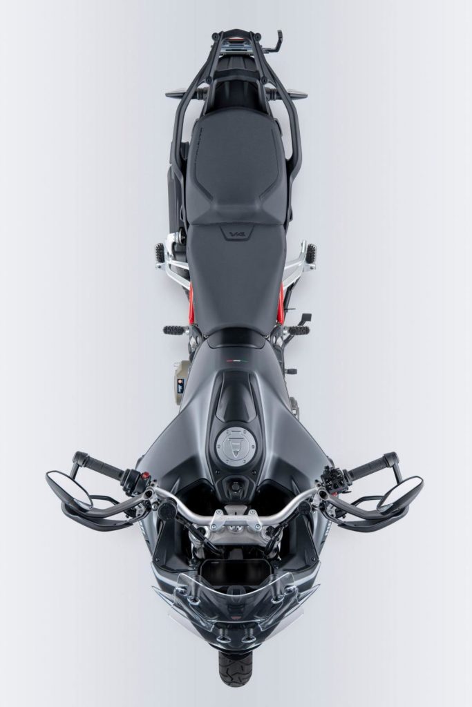 • Performance: Akrapovič approved silencer in titanium and carbon, Front mudguard in carbon fibre (Available for V4 and V4 S).