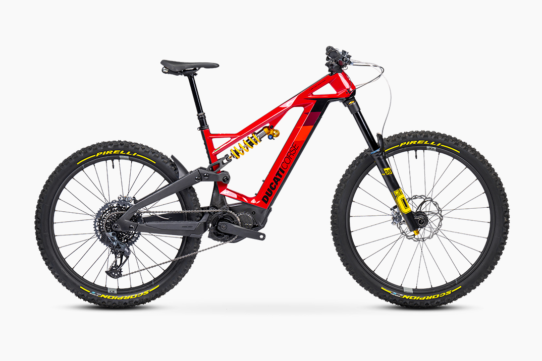 The unique paint job on the Ducati Powerstage RR Limited Edition E Mountain Bike is very stylish and unique. It is sure to turn heads when you are riding it.
