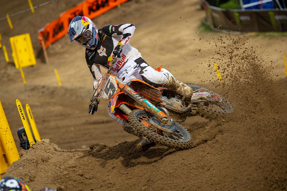 Team rider Max Vohland delivered one of his most muscular rides of the season at Spring Creek. With a top-five start in Moto 1, he made a quick move into fourth, and it wasn’t long before he charged his KTM 250 SX-F FACTORY EDITION into podium contention.