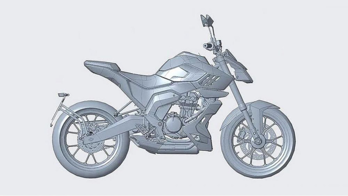 The new naked 124cc may arrive in 2022. Further in the patent drawings, we see a swingarm as well as a nameplate.