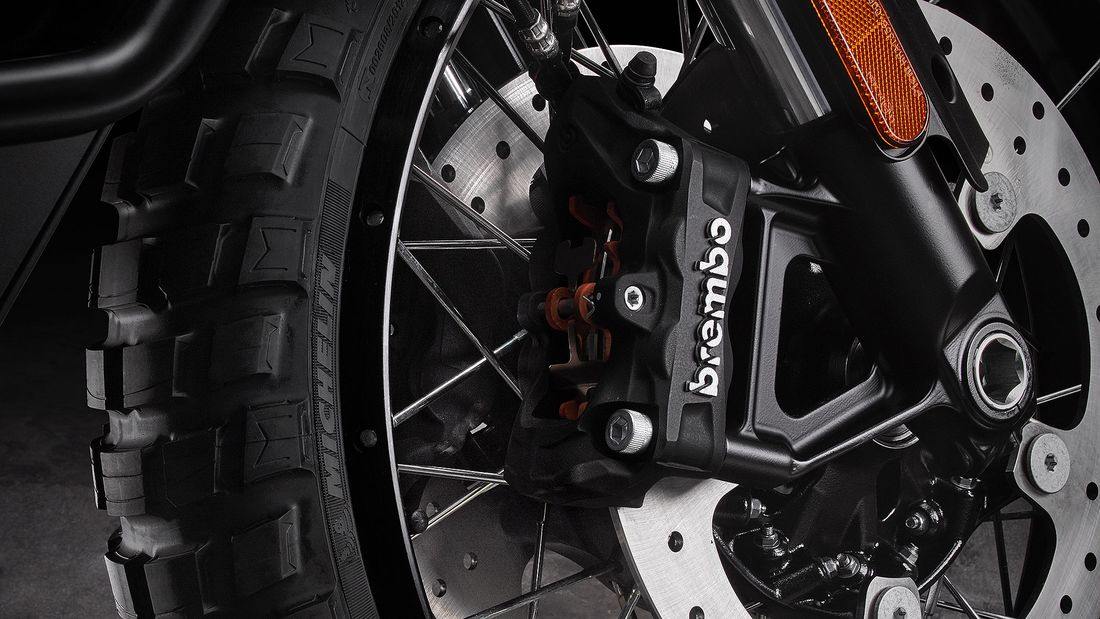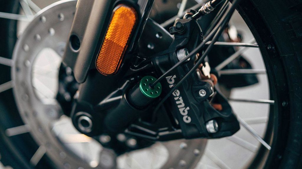 • The front brakes are Brembo Monobloc 4-piston brake callipers