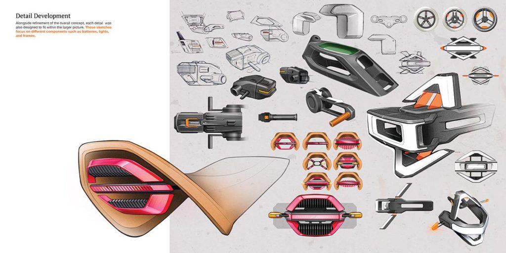 During the initial ideation process. The studies were also done on the kinematics of current bikes to better understand the riding position.